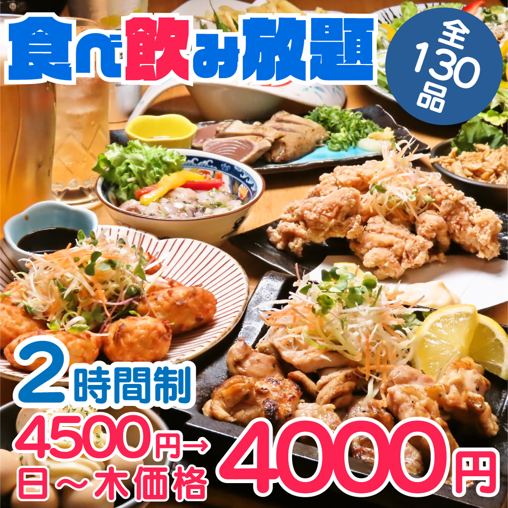 【食べ飲み放題コース<130種>】鶏の炭焼きなど食べ放題◆2時間◆日~木4000円/週末4500円
